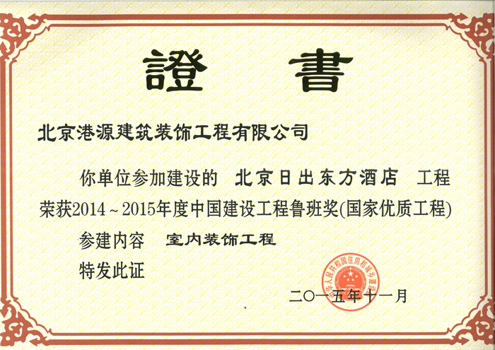魯班獎(jiǎng)——北京日出東方酒店