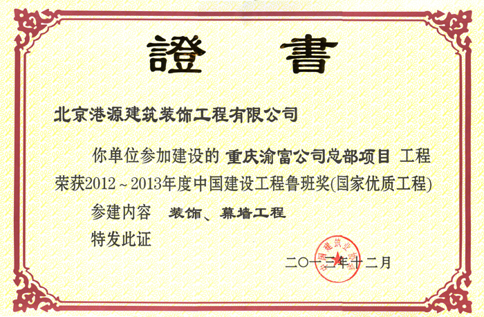 魯班獎(jiǎng)——重慶渝富公司