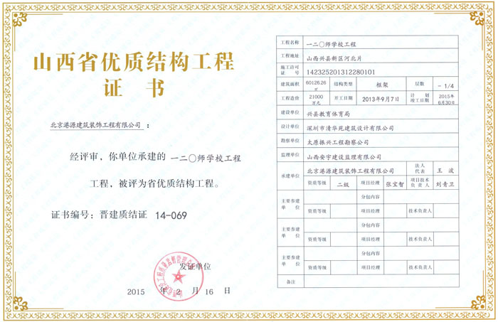 山西省優(yōu)質(zhì)結(jié)構(gòu)工程