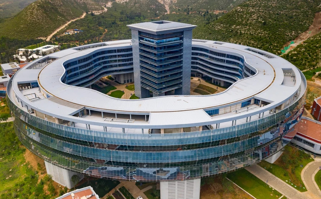 中國(guó)電科電子科技園位于河北淶水,是在青山碧水之間建造的大體量科研綜合體,由九大建筑組團(tuán)共同構(gòu)成了這座“桃花源中的科技園區(qū)”。