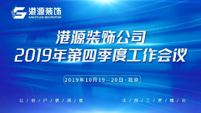 2019年10月19-20日,港源裝飾第四季度工作會議在北京總部召開。江河集團總裁許興利率集團行政人事總監(jiān)劉宇、商務(wù)總監(jiān)楊濤等領(lǐng)導出席會議。